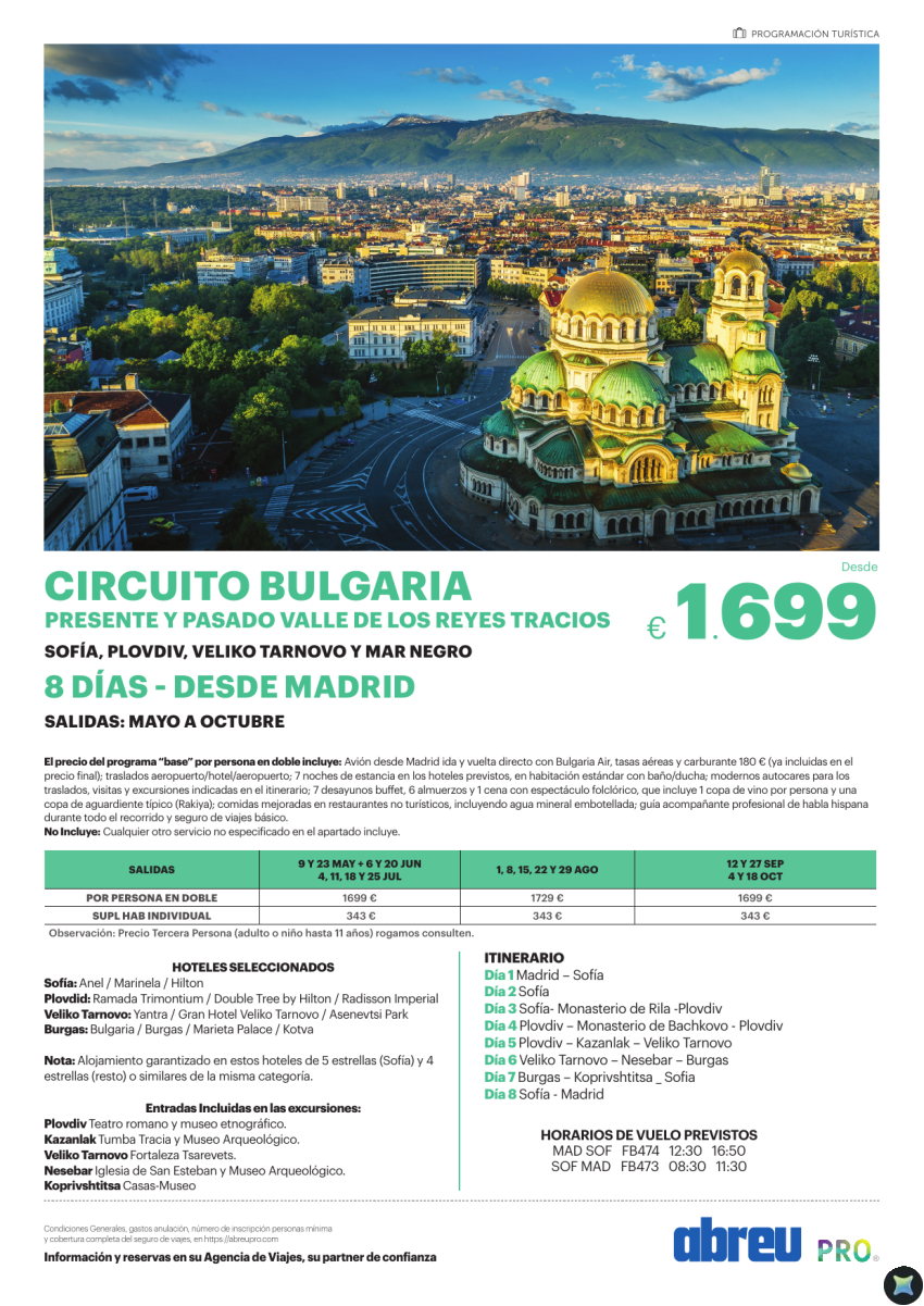 Circuito Bulgaria Presente y Pasado 8 días desde Madrid May a Oct